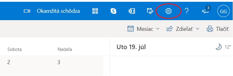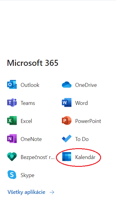 a) na vami zvolenom Microsoft 365 účte (Outlook) vyhľadáme aplikáciu Kalendár;