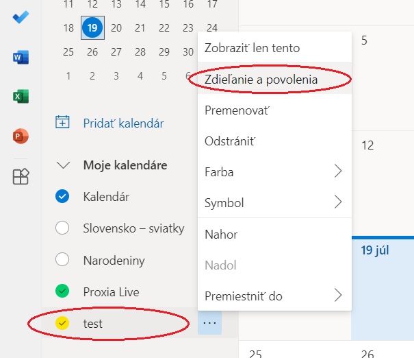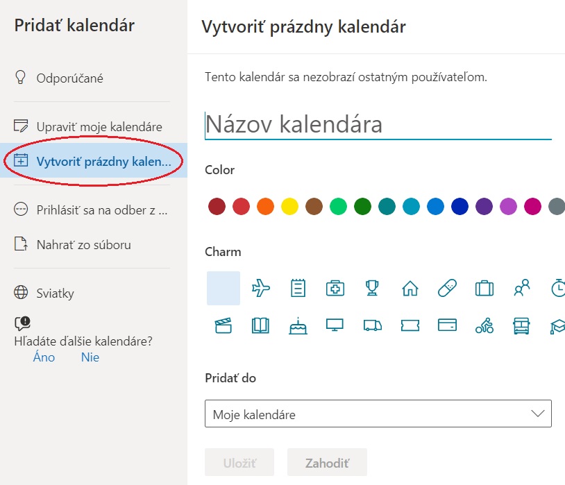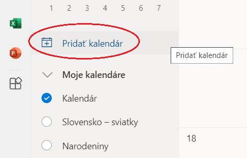 b) pridáme nový kalendár kliknutím na ikonu Pridať kalendár;