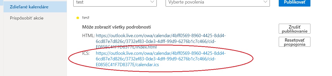 4. Zvolíme vhodný názov a do URL adresy skopírujeme link vo formáte ICS, ktorý získame nasledovne:
