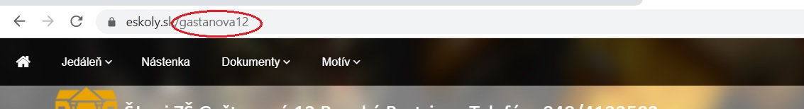 Zvolíme vhodný názov a skopírujeme kód jedálne podľa predlohy - vyhľadáme si v prehliadači našu web stránku a vyberieme jedáleň, skopírujeme kód. Napríklad pre ŠJ pri ZŠ Gaštanová 12 Banská Bystrica je kód jedálne gastanova12