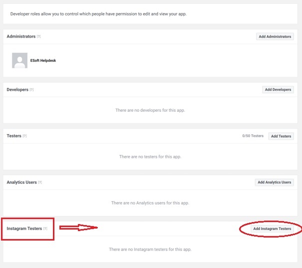 5. Zobrazí sa nám okno, v ktorom na konci zoznamu vyhľadáme Instagram testers a klikneme na tlačidlo ADD INSTAGRAM TESTERS.