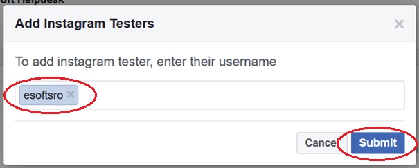 6. Po kliknutí na tlačidlo sa na obrazovke zobrazí okno, v ktorom je potrebne manuálne vyhľadať používateľa Instagramu (je potrebne správne zadať) a potvrdiť tlačidlom SUBMIT.
