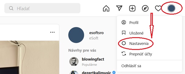 7. Po pridaní Instagram Testers prejdeme do účtu Instagram, kde sa prihlásime pod používateľom, ktorý sme pridali ako Instagram testers a vyhľadáme NASTAVENIA.