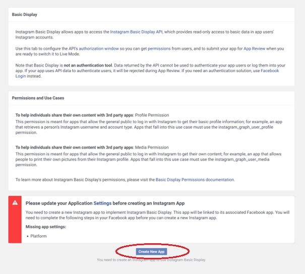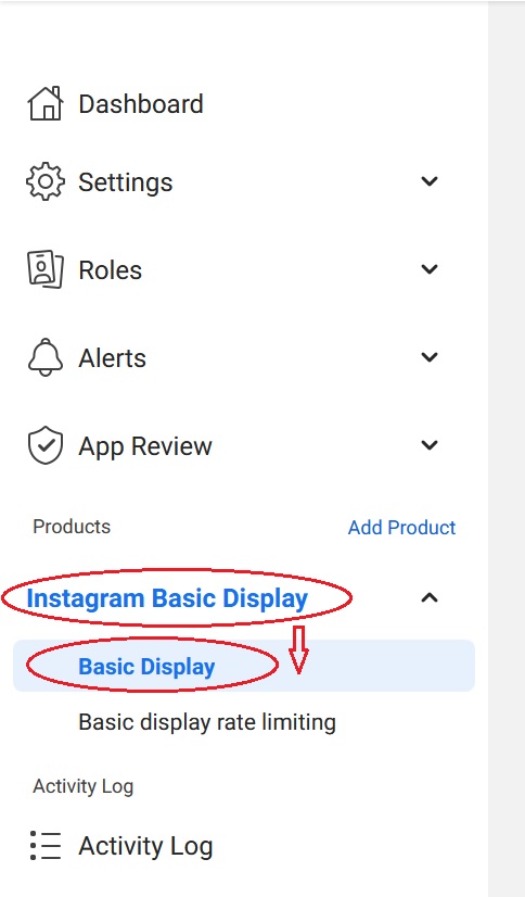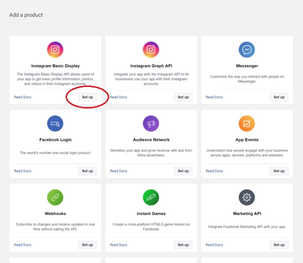 9. Následne po úspešnom akceptovaní pozvania na Instagrame, sa vrátime späť do účtu Developers a vyhľadáme novovytvorenú aplikáciu cez INSTAGRAM BASIC DISPLAY - BASIC DISPLAY.