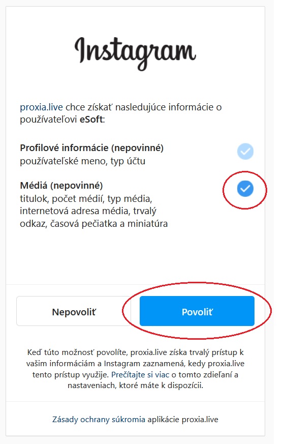 Video postup, ako nahrať Instagram, v systéme Proxia.Live.