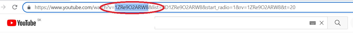 a) ak chceme zobrazovať video, skopírujeme kód videa, ktoré sme vybrali (nasleduje za v= a pokračuje až po prvý znak &) a zaklikneme typ videa Samostatné video;