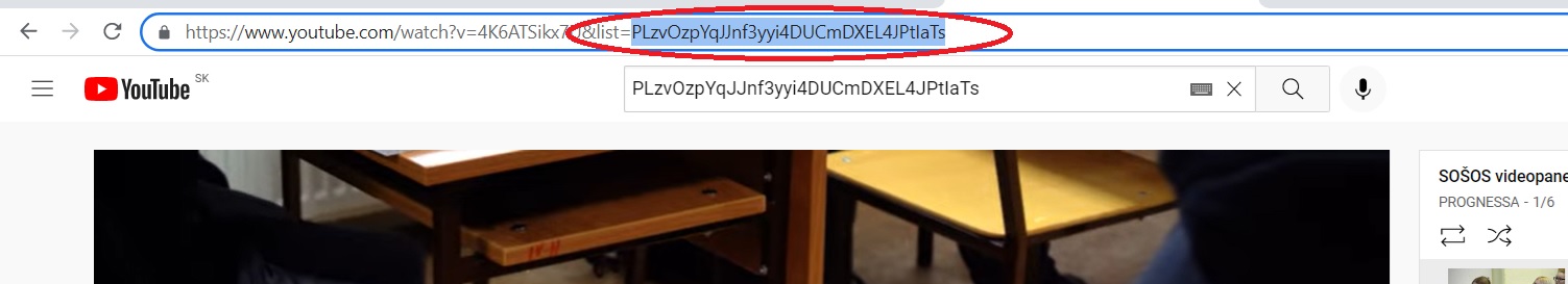 b) ak chceme zobrazovať playlist, skopírujeme kód playlistu, ktorý sme vybrali (nasleduje za list=) a zaklikneme typ videa Playlist YouTube.